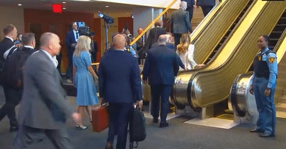 Stephane Dujarric, the UN spokesman, said a videographer from the US delegation who ran ahead of him triggered the stop mechanism at the top of the escalator.
